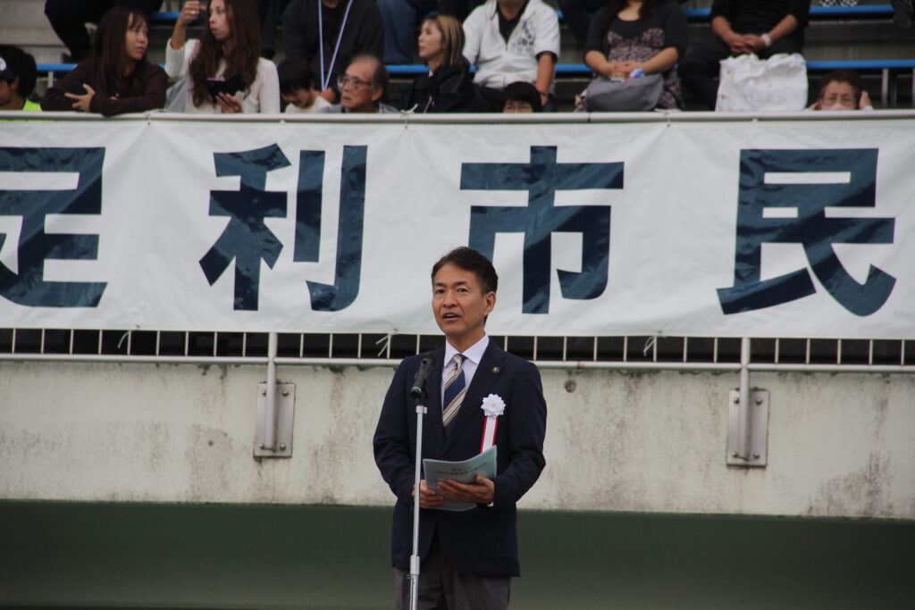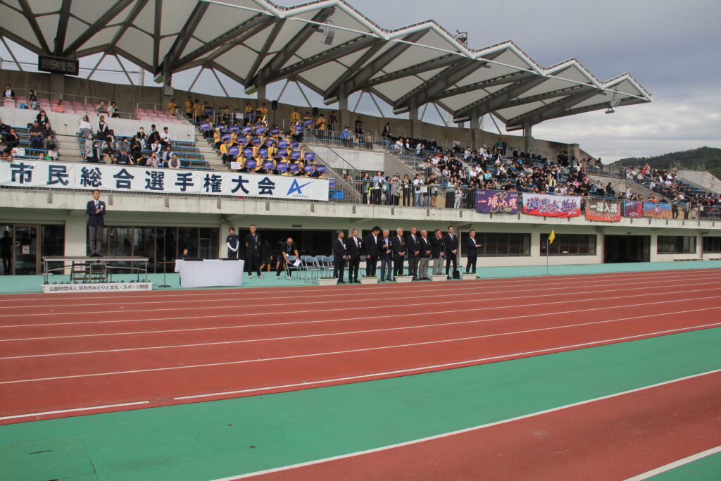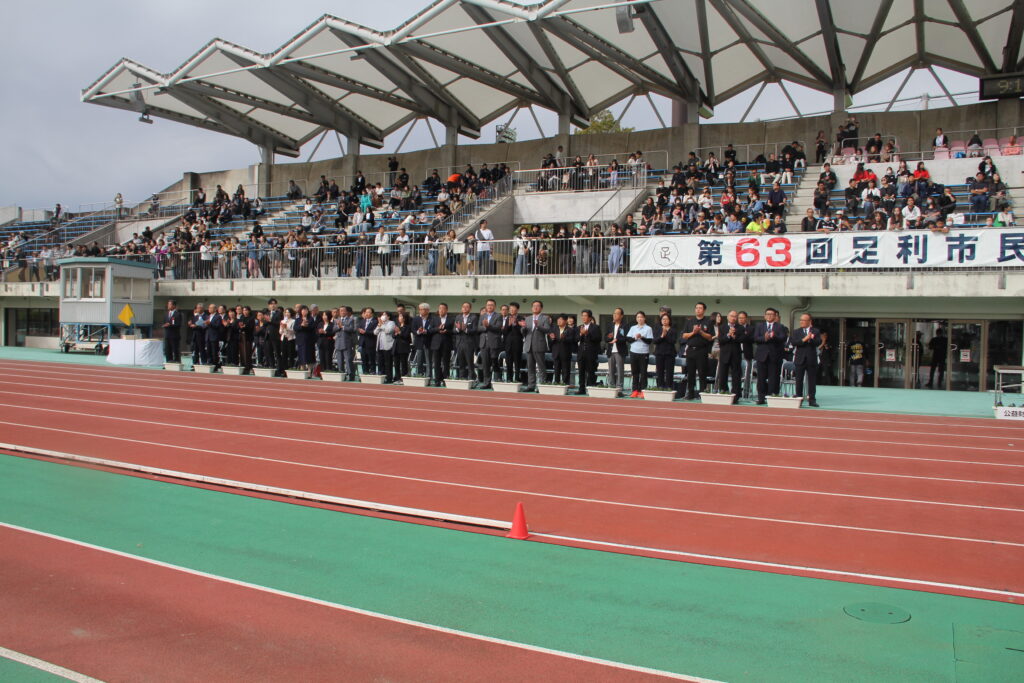 第63回足利市民総合選手権大会総合開会式が足利ガスグラウンド(陸上競技場)において、令和7年10月19日(日)に開催されました。